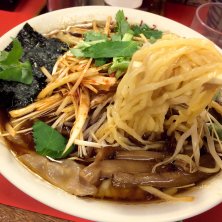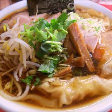 小田原系。 醤油ベースのスープは脂が浮いていて抜群にんまかった。七味か一味的なものが入ってました。 メンマは甘辛。チャーシューは厚め。辛ネギ。ワンタンは茶色く沁みてます。麺は縮れ。細切りねチャーシューも辛ネギに絡んでました。
