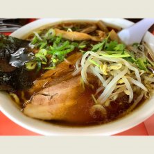 温泉旅行の帰り道、有名処のお店はどこも並んでて年寄り連れには優しくないので、町中から少し離れたラーメン屋さんを食べログで見つけてきてみました。幸い並ばずに入れました。 注文したのは普通のラーメンですが、自分的にはちょっと味濃いめで脂多め。チャーシュー多めなところはいいですね。
