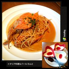 イタリア料理&バール たんと ランチ ☆渡り蟹のトマトクリームパスタ ☆サラダバー ☆ドリンクバー ☆プチデザートのパンナコッタ ほか、 ☆鮭とキャベツのペペロンチーノパスタ ☆小柱とブロッコリーのトマトクリームパスタ