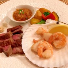 ちょびっと贅沢 美味しいものが食べたくなったらニューポート☆ ハズレがない! 素材の味が存分に楽しめる味付けがお気に入りです(^ν^) レディースセット 確か¥3,380 オードブル 生ハム、キッシュ、サラダetc スープ 地元産甘々娘の冷製スープ メイン カットステーキとホタテと海老のソテー デザート ケーキ(ケースの中から好きなものを選択) ドリンク コーヒーorティー