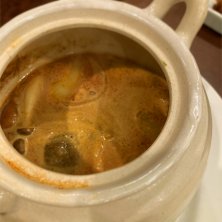 シーフードココット♪ ルーが緑色! 具材はイカ、ホタテ、エビ、ジャガイモ♪ 辛さは、ノーマルのココットと変わらないです! @シーフードココット¥1600-