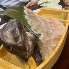 黒ソイの刺身 透明のバケツに入れたソイを連れてきてこれをこれから捌きます的パフォーマンス付き 刺身の鮮度もいいしだいたいのものがうまいんだけど店名で◯◯水産系のベタ大衆系に見せてやってる心意気がいいね。 #仙台駅 #仙台市 #宮城県