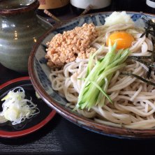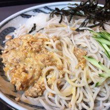 すいません、あんまりお腹空いていたので、玉子と納豆混ぜ混ぜしてから写真撮るの思い出しました…。 冷やし納豆そば・中盛です♪