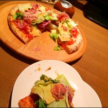 昨日のディナー\(^o^)/ 大好きなカフェの大好きなサラダピザを食べました☆〜(ゝ。∂) キウイのラッシーもおいしかったです\(^o^)/