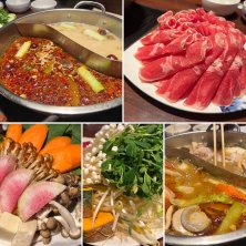 火鍋 お肉はラム肉と豚ロース、そのほか野菜、豆腐、マロニー、春雨、水餃子、ウィンナーなど。 見た目通り辛いのとまろやかなのと2種類のスープ。薬膳スープのようで、かなり独特な味。食べ進めるうちにくせになる。 意外とウィンナーが美味しかった。芸能人のプライベートのサインも多数あり、唯一無二のお店なのでは。