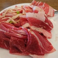 まぁ〜こんなもんでしょう 薄くて硬い(笑) 歯ごたえ満点! 食べ放題の店が増えてる中 このスタイルを貫くのは それはそれで流石で、庶民のミカタ 若いうちから、塩ハラミとか、上カルビとか言ってちゃだめ👎 ここから、焼きすぎはダメよ!を修行するんです 相変わらずの甘口タレも悪くありません たっぷりのにんにくで! 意外にソフトクリームの濃厚さは、そんじょそこらのお店では、真似できないクオリティです。 超〜おすすめですよ サイドメニューだけでも相当いけてます! カレーもバターチキンやら三種類!
