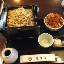 まかない丼ともりそば 大盛り : 本日のまかない丼はたけのこご飯だったけど、ちょうど前の人で品切れ( ̄▽ ̄) ミニかき揚げ天丼に変更になりました(^-^; こっちの方がアツアツのかき揚げが乗っていて、良かったぜい٩( ᐛ )و 蕎麦は大盛りにしたら3段に^ - ^ 美味しかった(*^^*)