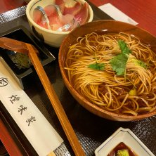 まかない丼ともりそば : 本日のまかない丼はかつおのたたき丼だったらしいが品切れの為ミニかき揚げ丼(^-^)/ そばも大盛りにしたら三段になった╰(*´︶`*)╯♡ でも一段追加で300円は高いよね( ̄▽ ̄) かき揚げが揚げたてで、丼いっぱい٩(๑❛ᴗ❛๑)۶ 美味しかった〜(*^^*)