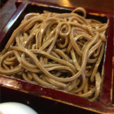 三色大もり : 変わり蕎麦,せいろ蕎麦,田舎蕎麦 二枚めは田舎蕎麦^ - ^ 見た目通り太く黒いのだが、特別そばの風味は強くない^ ^ 特筆すべきはその硬さ(^-^; ムチムチ過ぎる( ̄▽ ̄) 昔の蕎麦はこんなだったのかなと考えさせられました(^ ^)