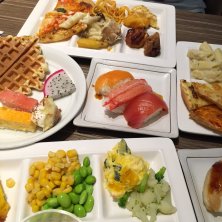 ⚫︎ブッフェスタイル アソート ディナータイム¥1668 ワッフル作れるぅd(´ω`*) お寿司もあるぅd(´ω`*) ソフトにアイスぅd(´ω`*) お茶漬けぇd(´ω`*) 食べホイエ-ィ