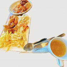 お昼ご飯。 今日は2人ともお仕事お休みだったのでお台場に行ってきました♡ アクアシティの中のアメリカンビュッフェでもりもり食べてきましたーヽ(*´∀`)ノ♡ 安いからどうかな?って思ったけど、ローストポークやロティサリーチキン、タコスとかいろいろあって楽しめました♡♡ 席からレインボーブリッジと自由の女神が見えてゆっくりできました(*´艸`)♡