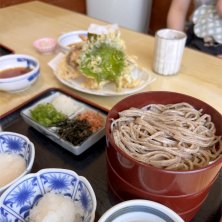 島根の実家に2泊3日で帰省して来ました。 ここ何年か行ってなかった近所の蕎麦屋に今回はどうしても行きたかったので、2日目の昼過ぎに行くとまさかの26組待ちで諦めました。 3日目の今日はオープンする11時の15分ほど前に行ったのだけど、名前を書く表にはすでに13組! その後も続々とお客さんが集まって来て、11時過ぎには40台ほど停められる駐車場も満車の状態に! いつからこんな人気店になったんだ?! 私たちは11時30分くらいに入店できて、お昼前には美味しいお蕎麦をいただくことができました(^^)