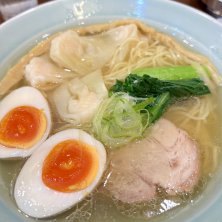 パパッとお買い物途中で🍜 海老ワンタン塩ラーメンに味玉プラスで ちゃっちゃといただいて ばーっとお買い物して帰りました🚗
