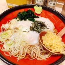 冷しとろろ蕎麦♨️温玉トッピング** 仕事前の遅お昼。とろろ別の方が良いなぁ。 これでも葱多め。もう少しください、なかなか言えないね😆笑。 蕎麦、30円値上げされた。それでも冷蕎麦はかなりコスパ良し👌😋 前回と同じ物食べてた、笑。1か月早〜〜😅💦