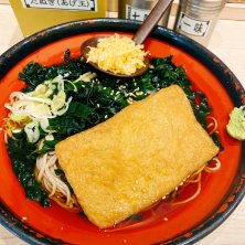 わかめ蕎麦きつねトッピング🦊 今年初冷やし。お腹空いてたから蕎麦1.5盛りにした。わかめよく噛むからか満足♪ 冷やしだと、ヘタな蕎麦屋より蕎麦自体もおいしい😋 後から、神田も冷やしはわかめ少しトッピングしてくれるの思いだした😅