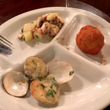 ヴェネチアンスタイルの立飲みをしてきました。 ポルペッタ140円、はまぐり150円、タコのマリネ250円、プロセッコ370円が2杯で大体1200円ぐらい。 タコのマリネ美味しかった。オリーブ、ケーパー、ポテトと和えてあります。 プロセッコは少し甘さがあって美味しい。