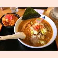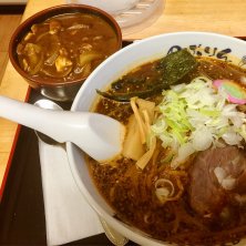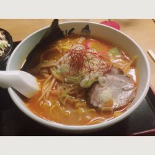 だんなさんのリクエストでラーメン。私は黒い味噌味のクロちゃんラーメンで。クセになりそう(^-^)