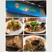 1年ぶりぐらいのパラディーゾ。 ここにきたら絶対に食べる、魚介のリングイネ。 貝類が5種以上入っているので、魚貝のダシが効きてておいしいです。 そして、ペスカトーレのリゾット。 レモンを絞りサッパリさせてから食べますが、お米の硬さがちょうど良く、こちらも魚貝のダシがお米に浸透していて最高のリゾットです。 サラダもたっぷりで、お腹いっぱいに。 前に来た時より全体的に値上がりしてました。