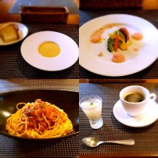 お勉強の日のお昼ご飯 美味しいイタリアン♡ 今日は珍しくお昼をゆっくり取れたので美味しいイタリアンへ♪ トウモロコシの冷製スープ 夏野菜の昆布マリネ、梅泡ソース 天草産蛸のパスタ グレープフルーツのグラニテ 蛸の旨味たっぷりなパスタ おかわりしたかったな♡