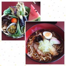 今日のランチは、「東光坊」で、冷たい鳥そば、木耳、かき揚げ、煮物、茄子漬物マスカットが付いて、1,100円也! コシのある蕎麦、かき揚げ、木耳、どれも、んまかったぁ〜♪