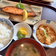 毎月仲良し会するんどけど、ここのお店になることが多い!美味しいから😋昨日は、銀鮭の麹焼き定食🐟。大きな切り身にしっかり塩味と旨みがぎゅ! 麻婆豆腐も◎。気温が上がってきて、雪庇の雪が「ドン」て落ちるんですよ。こわ‼️