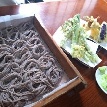 この先にお店あるのかな?というような山道を車で走る。お店ありました。平日もそこそこ混んでた。この辺りのお蕎麦は布海苔をつなぎに使っているので緑っぽい色なんだけど、ここのお蕎麦は緑通り越して黒っぽい。 食べごたえあり。つゆは甘さを抑えた独特の風味。野菜天ぷら&ふきのとうの天ぷらも頼んで、春を感じつつ美味しくいただきました♡
