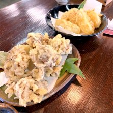 蕎麦屋で一緒に頼んだ天ぷら 舞茸天 🍎りんご天