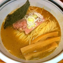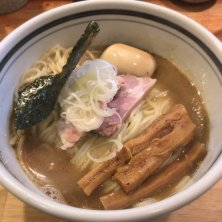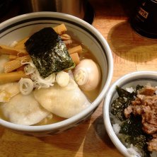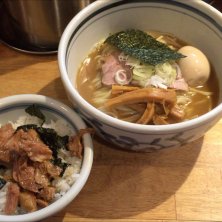 昼休みも打ち合わせ。午後少し余裕あったので小遠征。ちゃーしゅーご飯セットにメンマと玉子と水豚餃子。 魚介の香り高いスープ、流石の味噂に違わぬ接客。メンマ追加大正解、水豚餃子はチャーシューのが良かったか