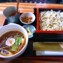 相馬の美味しいおそばやさんで昼ごはん。「鴨せいろ」をいただきました。他のスタッフが頼んだ「天ざる」も美味しそうでした!