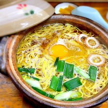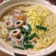 御当地ラーメン【須崎編】 高知県須崎市の名物、鍋焼きラーメン。 こういうラーメンだと麺がすぐに伸びちゃいそうだけど、時間が経っても腰があってシャキシャキ。 しかも細麺!! これもライスが欲しくなる一杯ですが、そのままブッ込んで〆の雑炊にしても旨いです。