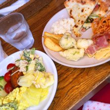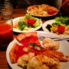 今日はいつも一緒にお昼を食べてる同僚二人がお休みだったので、ランチはちょっと足を伸ばして人形町のサルバトーレ・クオモのランチビュッフェへ。 ショートパスタのサラダとか、青海苔の揚げニョッキみたいなのとか、あとは平たい手打ちパスタがしこしこでとっても美味しかったです。7×4センチくらいにカットされたラザニアみたいなパスタなんですが、モッチモチ!歯ごたえしっかりで美味しかったです。