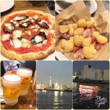 @sarara311ちゃんと、清澄白河のカフェから隅田川沿いで、気持ちの良い風に吹かれ夕涼み… そのまま、歩いて人形町へ。 あまりお腹も空いてないので、ビールでピッツアを食べて帰宅しました。 サルヴァトーレの、揚げニョッキとパンチェッタの盛り合わせは絶品で、いつも頼みます。 ビールにぴったり! これとピッツアを食べるのに、ビールなしとか考えられない…。笑