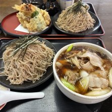 天ざるそば ボリュームが有ると定評の純手打ち蕎麦のお店。(=^ェ^=) 揚げたての天麩羅は、エビ天3本、イカ天1本、野菜天が4個も付いている。(;゜0゜) 蕎麦もせいろからこぼれる程のボリュームです。Σ(゚д゚lll) 本格的な信州の田舎蕎麦と言う事だが、残念ながら自分が食べ慣れていない為か、モサモサとした食感で好みの味では有りませんでした。 …>_<…