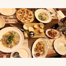 マルゲリータピザ アサリの和風パスタ ジェノベーゼクリームパスタ ガーリックシュリンプ 生ハムクレソン オニオンリング 昨夜は神戸に住んでいる甥っ子も合流して盛り上がりました☺️おかわり自由のパンが美味しかった😋お部屋からは神戸タワーや観覧車のライトアップが見えて最高でした😍