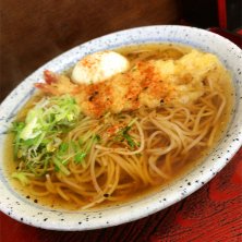 今日のランチ かき揚げそば これから帰京して一仕事〜