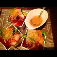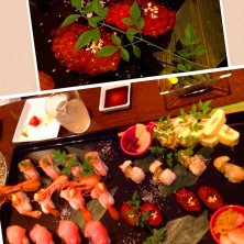 創作寿司・金粉載せです。ジャグジー風呂で足湯出来るゴージャスカラオケです。30分のチャージ料はお高いですが、お料理のコースがイタリアン・和食もあり美味しいです。