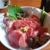 店頭に「ガンコ店主」とか書いてあるので地雷かな~って思ったけど、調査の都合上で他に探してる暇もないので意を決して入ったら案外当たり。 ネギラーメンの上に乗ってるのの冷たいversionなのだが、これはイケてる!