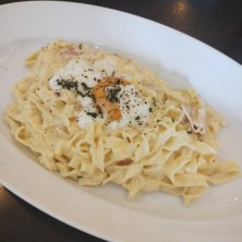 茂原公園まで桜を見に来ました🌸 まだちょっと早かったかな。 ランチはゴン太が仕事で来て、美味しかったって話してたイタリアン🇮🇹 毎朝パスタを手打ちしてるそうです。 住宅街にあるのに、すごく混んでました。 でも味はまぁまぁかな…😅 ゴン太が注文したケーキはパスタセット1,150円に700円もプラス😱😱😱 パスタより美味しいって絶賛してました😑 *カルボナーラ大盛り(タリアテッレ) *イカとタラコのクリーム(タリオリーニ)