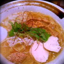 濃厚鶏白湯そば。最初に一口スープを頂いて『天一?』ドロドロスープにこれでもかという鶏、鶏、鶏。麺の茹で加減も少し硬めで超好み。具の穂先メンマ・鶏チャーシュー・つくねがそれぞれ薫り高い三重奏。★★★★★