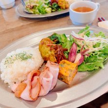 野菜をふんだんに使った ワンプレートランチー( ´罒`*)✧" 前来た時ポタージュスープを こぼしてしまったが、嫌な顔1つせず 新しいスープを持ってきて下さり スカートや靴にこぼれたスープを 店員さんが拭いてくださいました。 ランチも美味しいしお気に入りの カフェです◡̈♥︎ 夜はBARにもなりますお٩( ^ω^ )و