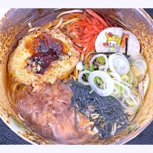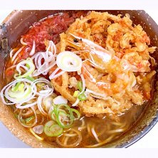 京急ロイヤルフーズ株式会社が運営する立ち食い饂飩と蕎麦の店、えきめんやの期間限定メニュー、 たこぺったんそば。たこぺったん、鰹節、海苔、葱、紅生姜と薄焼き煎餅が入った蕎麦。饂飩か蕎麦が選べるが、蕎麦の方が食べたかったんで、こちらに。たこぺったん、初めて食べたが美味かった。 たこぺったんとは、1995年から東京都大田区の学校給食で30年続いている人気メニューで、蛸・キャベツ・大豆・コーン・人参・葱が入ったたこ焼きのかき揚げ風に仕上げた物。