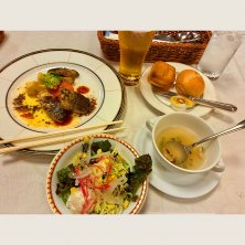 今日のランチ 本日の日替わりB鰆のタンドリーソテーでした コーヒー付で1500円スープサラダはおかわり自由 ビールは880円とお高め