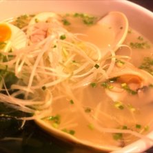 仕事帰りにラーメンが食べたくなり、数ある吉祥寺のラーメンから、今日は「麺屋 海神」の「はまぐりラーメン」です。入荷する新鮮な魚は毎日変わりますが、その入荷する魚毎に「あら」を丹念に炊き上げ、作るスープはとっても美味しいです。その日に使用する魚の種類を壁に毎日貼り出し、日毎に変わるスープの味が楽しめるという不思議なお店です。他にも色々揃っており、「あら炊き塩ラーメン」や「へしこの焼きオニギリ」もカナリイケます。大盛り無料も嬉しいお店です。(^ ^)/
