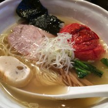 取材拒否店1のご紹介。 荻窪にあるラーメンチキュウ。おしゃれな外観にカフェみたいなお店。オススメは塩ラーメン、トマト入れると美味しいですね。淡麗系なラーメンでデートに持ってこいなお店です。