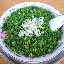 青ねぎラーメン(醤油)味玉トッピング 表目を覆いつくすみじん切りの青ねぎ。ノーマルなレンゲの他に、ねぎを食べるための穴あきレンゲも付いてきます。ねぎの下には手打ち麺、チャーシュー、メンマやナルトが潜んでいます。佐野らーめんの青竹手打ち麺は太縮れで、固すぎず柔らかすぎず、適度な弾力。チャーシューも弾力が楽しめる厚さでカット。 スープは甘口醤油ベースで、ほんのり甘くあっさりした薄い色。最後まで美味しくいただきました。 時期柄、らーめん関係の投稿が増えそうですが、よろしければお付き合いください。