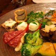 前菜盛り合わせ。1980円。 ちょうど二人分の分量。 生ハム、サラミ、イワシの酢漬けなど…。 綺麗!美味しい!ワインが進む!