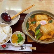 暑い夏ですが、なぜか食べたくなって、天ぷら味噌煮込みうどん1050円。無料でご飯が付くので卵はこちらにのせて。なかなかボリュームがありました。 (=゚ω゚)ノ
