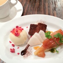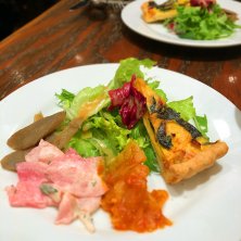 散歩の途中でランチ。前菜三種。ワインが飲みたくなる…。