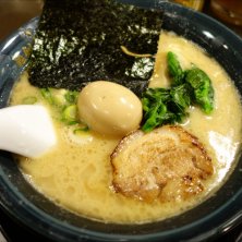 本丸麺 大盛り(普通、大盛り選べる) +瀬戸内の岩のり 海苔好きなので、焼きのりと岩のり迷った。 結果、横浜家系の見た目だがコッテリしてないので、 岩のりで塩気プラス正解 \(^o^)/ ほうれん草でなく、菜の花だよ☆ チャーシューはホロホロとろける系で好み。 いつも行列のお店。 ガイドブックに載っているようで、外国人観光客が多い。 明後日健康診断なので、明日は質素な食事予定w