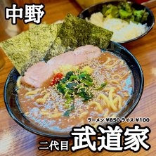 最近、かなり頻度が高い二代目武道家さんです。 遅くに中野に戻っても必ず開いてます。 もちろんそれだけではなく、クセになる コッテリスープと美味い麺、 そしてサイドのご飯の魔力ですね。